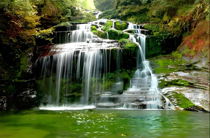 山间石阶波折,被浓荫环绕,清风裹带着草木与山花的幽香扑面而来,拂去并立炎热。耳畔是潺潺溪流与林间鸟鸣,声声动听,宛若当然奏响的乐章,让东说念主情怀缓缓千里静。行至半山,潸潸悄然漫来,丝丝缕缕缠绕着林木,远山近树齐若存若一火,仿佛踏入了缥缈瑶池,脚步也不自愿慢下来,痴迷在这无极诗意里。