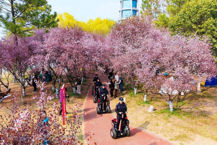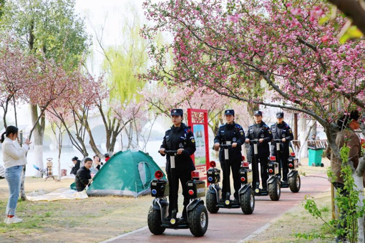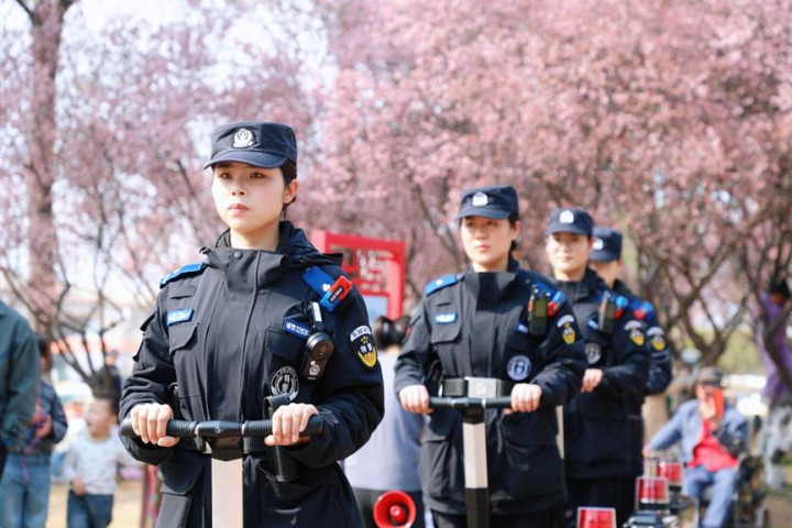 春和景明,草木更生。跟着中小学春假驾临,东海县西双湖湿地公园迎来了春日旅游飞腾,看花岛上梅花、玉兰花竞相通达,市民旅客熙来攘往,很多家长带着孩子在此搭起帐篷,享遇难得的亲子时光。在这片春色满园的欢叫中,一群意气飞扬的身影格外引东说念主注目——东海县公安局巡特警大队的女特警队员们正以柔肩担重担,用温文守护市民的春日之旅。