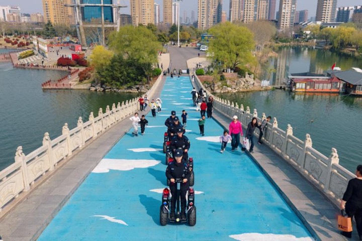 针对春假时辰西双湖局势区客流激增的特质,东海县公安局巡特警大队科学部署警力,组织女特警队员强化景区巡查防控力度。女队员们充分证实耐性玄虚、亲和力强的上风,遴选“步巡+定点值守”相会聚的阵势,重心对看花岛、十七孔景不雅桥、湖边步说念等东说念主员密集区域及临水危境地段开展高频次巡查 。