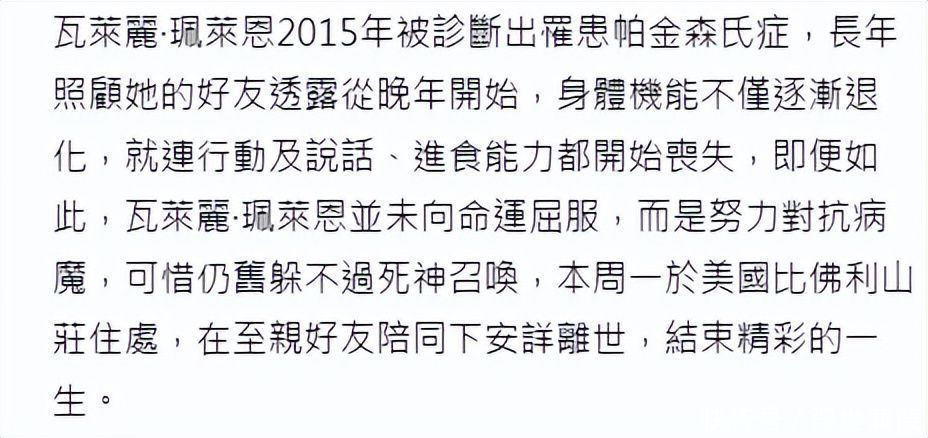3月23日,好莱坞传说女星瓦莱丽・珮莱因在好意思国比弗利山庄寓所安详离世,享年82岁。