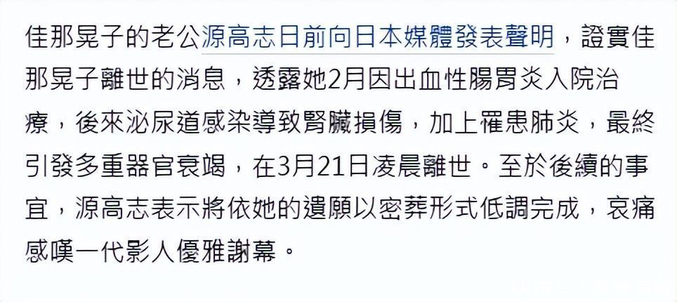 佳那晃子:卧病 13 年优雅离场,日版邱淑贞终得开脱