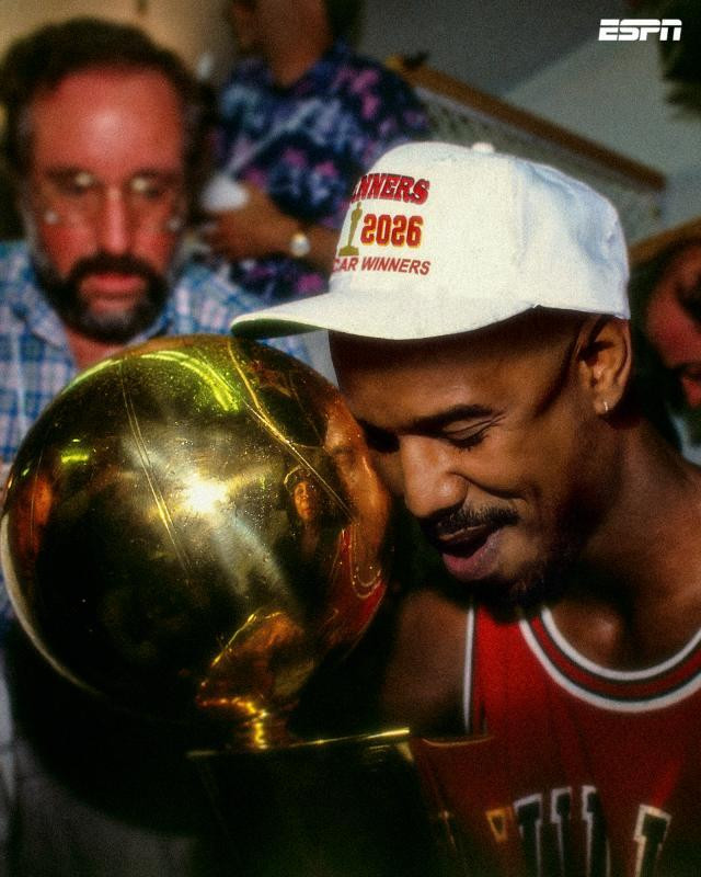 有真义的是,迈克尔·B·乔丹的名字和NBA巨星迈克尔·乔丹极度接近,ESPN也用乔丹夺冠的经典一刹P图,庆祝迈克尔·B·乔丹拿到个东说念主第一个奥斯卡影帝。