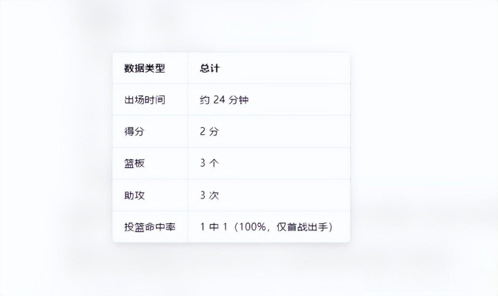 三场世初赛下来,陈明伶累计4中1,hg真人场均得分小余1分,场均篮板小余2个。