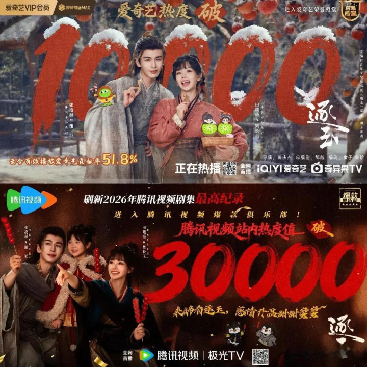 对于长视频平台而言,拼播模式能让合营两边分享制作与宣发本钱,大幅裁减单一平台的进入风险,同期类似两边的用户池上风,助力齐全流量与交易收益的最大化。事实也印证了这一模式的价值,《逐玉》凭借拼播创造了行业新记载,成为内娱首部在爱奇艺与腾讯视频双平台均齐全热度破万的剧集。