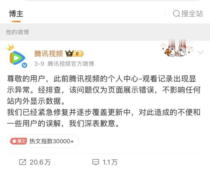 有用户响应,仅不雅看了几秒告白,系统便骄矜已识破辟集;也有用户默示,我方从未主动不雅看该剧,账号却窘态出现联系不雅看记录。对此,腾讯视频飞速修起,称上述问题仅为页面展示故障,不影响站表里任何公开数据的统计,且已完成困难开采并缓慢推送更新,但这一修起仍未平息部分网友对平台热度值意想机制的质疑。